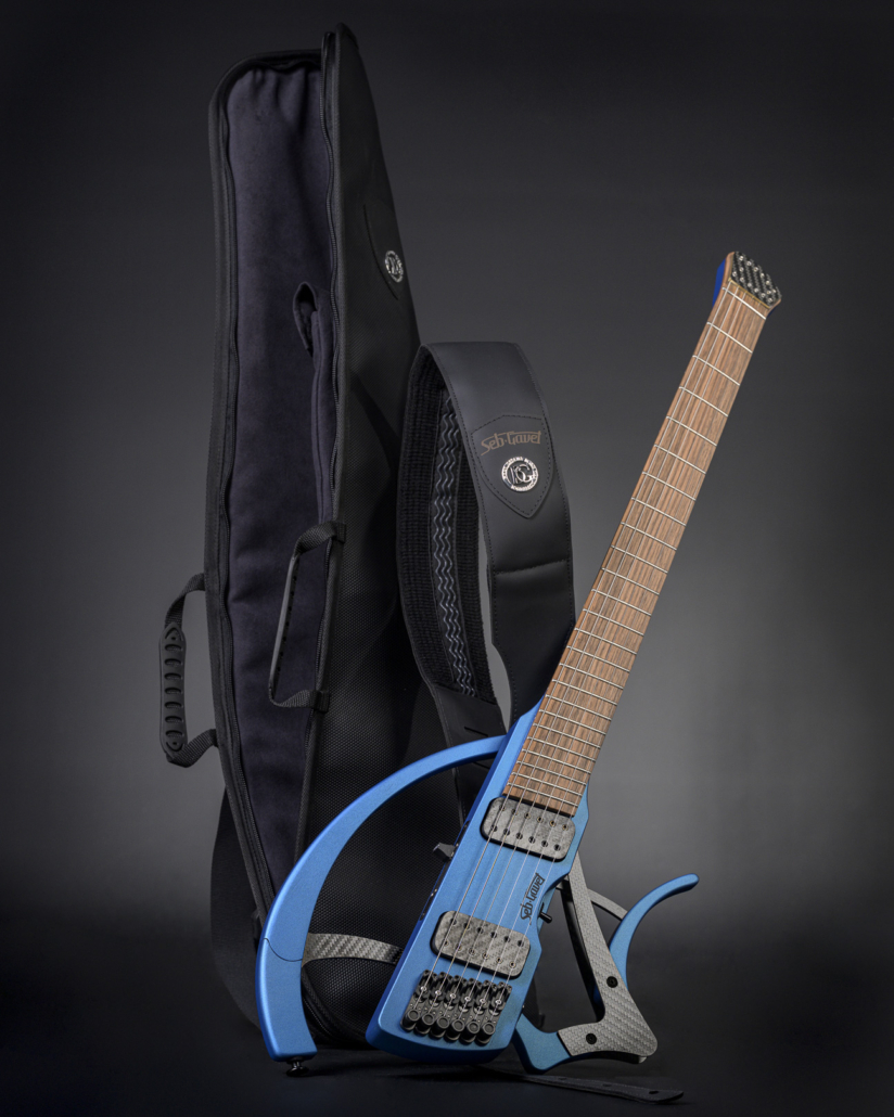 La Mantispa est la dernière née de la gamme. Il s’agit d’une guitare headless multiscale ou guitare sans tête multidiapasons.